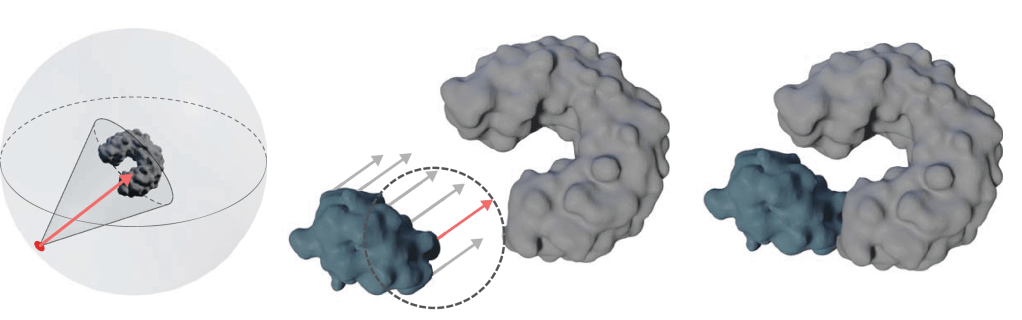 Enter shape tracing. In collaboration with the Chris Willcocks group in Durham’s Computer Science Department (in particular, shout-out to Adam Leach), we combine our protein volumetric representation (STID maps) with a generalisation of ray racing capable of detecting the collision of arbitrary three-dimensional shapes.