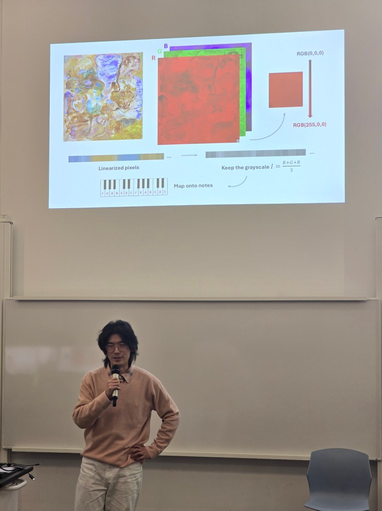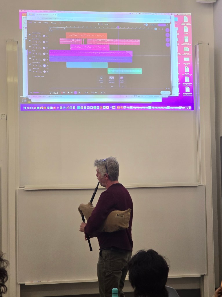 Fun event at the School of Chemistry! Before Christmas, participants to the Data Jam workshop worked on finding creative ways to convert data into music. On Wednesday 5 March, it was showcase time! Among the 10 demonstrations we had acts as different as a bagpipe accompanying a protein sequence, a soundscape of a lab, and the sound of a soil sample. The event also featured Ryan, who converted the RGB of a painting into music, and Matteo, who played a Ramachandran plot!